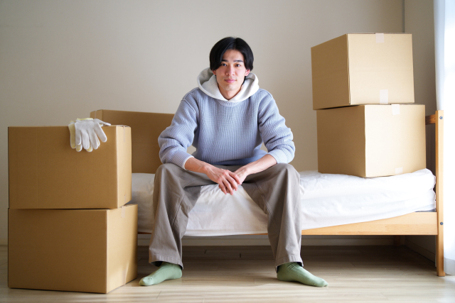 お部屋は引っ越し直後で、荷物が床一面に広がっている状態でした。