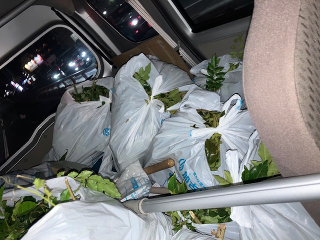 道路側に草がはみ出している